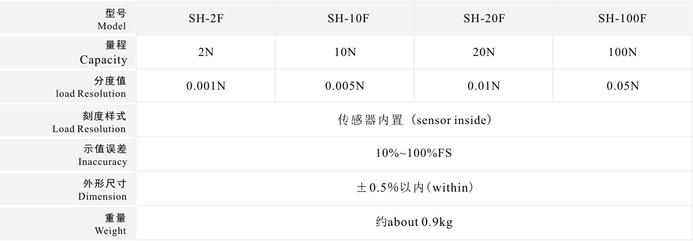 高精度高分辨率,準(zhǔn)確度0.5級,最小讀數(shù)達(dá)0.001N;