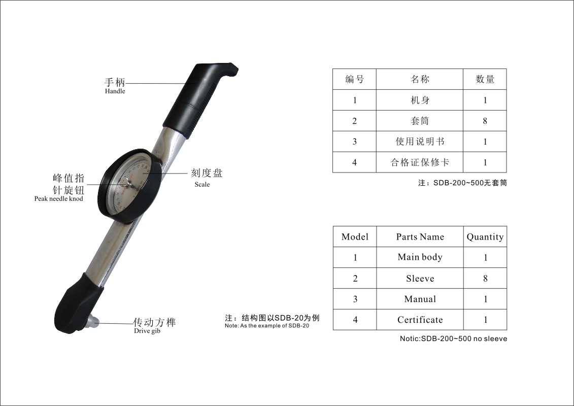 產(chǎn)品名稱:SDB-200~500系列表盤式扭力扳手