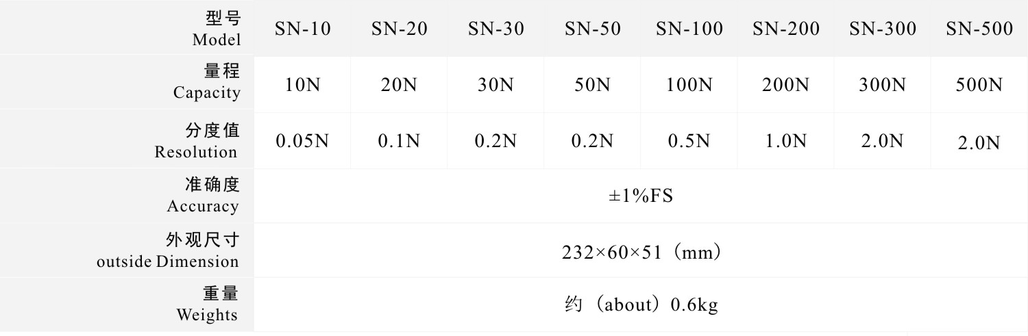 N和kgf兩種單位同時(shí)顯示(單位可定制),無須單位換算;