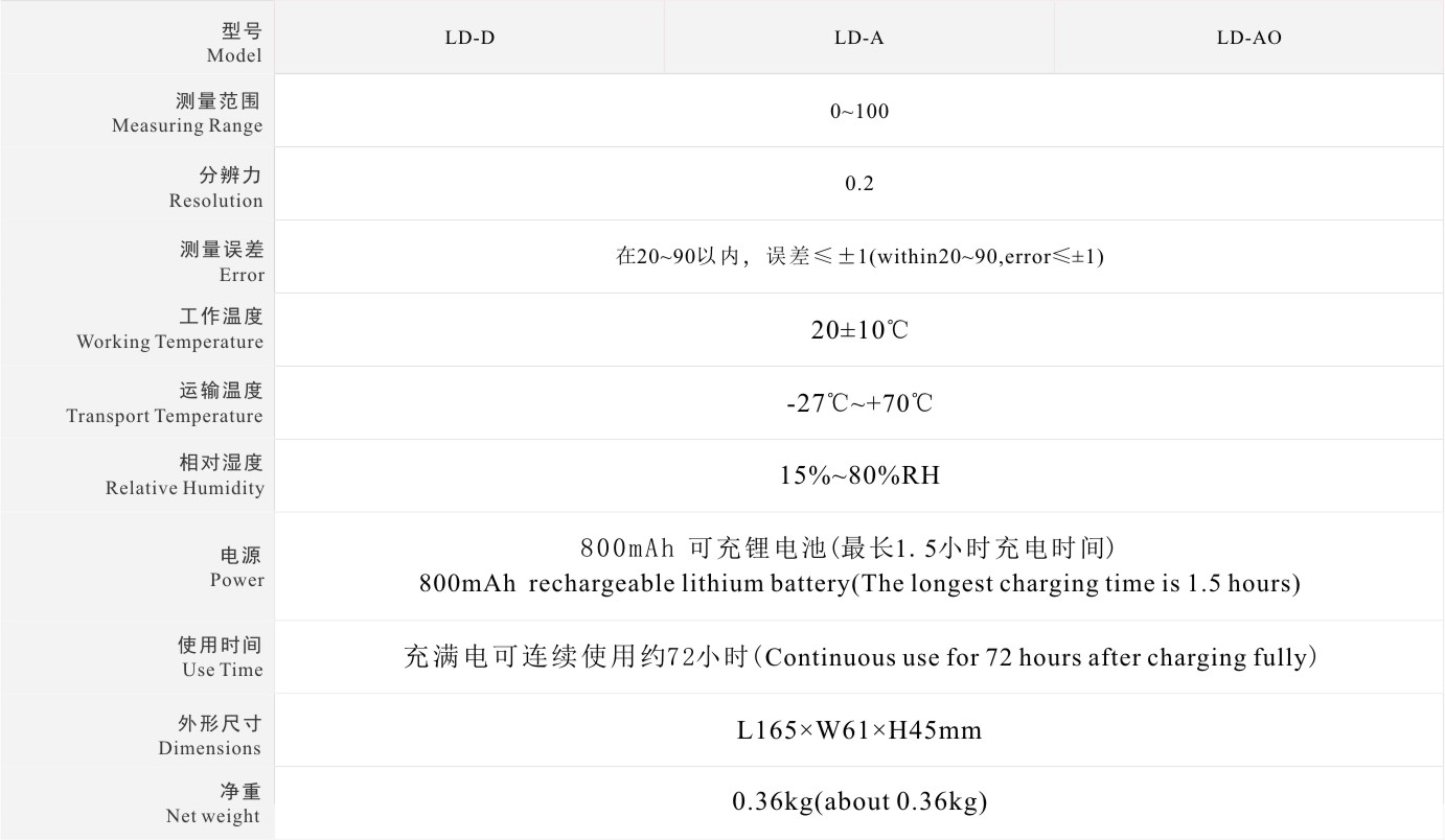 測(cè)量誤差:在20-90HD內(nèi),誤差≤±1HD